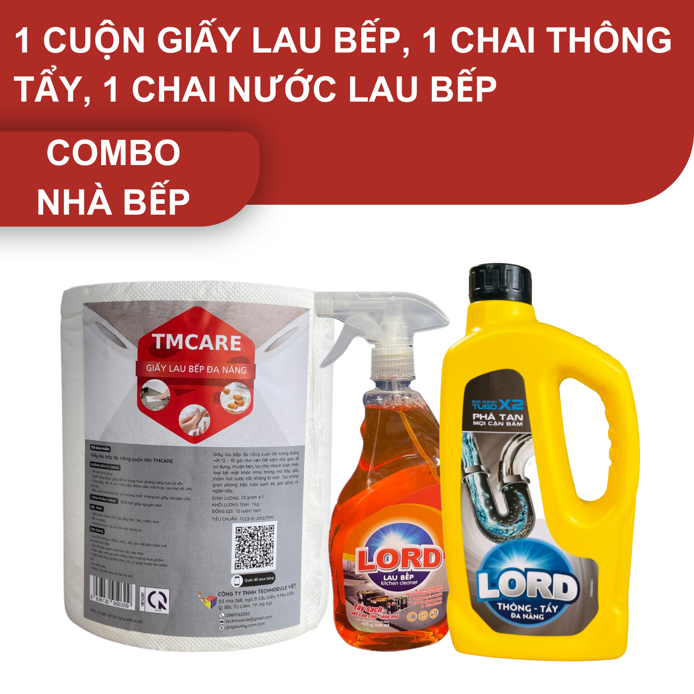 [Combo Nhà Bếp] 1 Thông tẩy đa năng 1kg +1 Cuộn giấy lau bếp 1kg + 1 Chai nước lau bếp 500ml