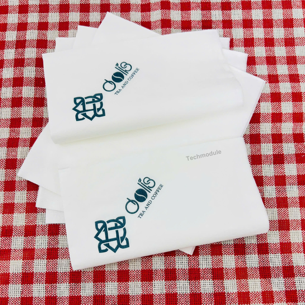 Khăn giấy napkin in logo được sản xuất bởi TECHMODULE là sản phẩm an toàn tuyệt đối. Giấy được làm từ thành phần 100% bột giấy nguyên sinh, không hóa chất tẩy trắng độc hại. Đặc tính giấy bền dai, thấm hút tốt vì được sản xuất theo tiêu chuẩn Nhật Bản. Chính vì vậy hàng ngàn doanh nghiệp luôn tin tưởng lựa chọn sản phẩm khăn giấy chất lượng cao cấp của TECHMODULE để phục vụ khách hàng.
