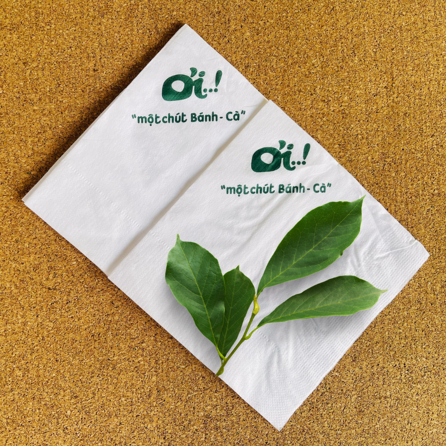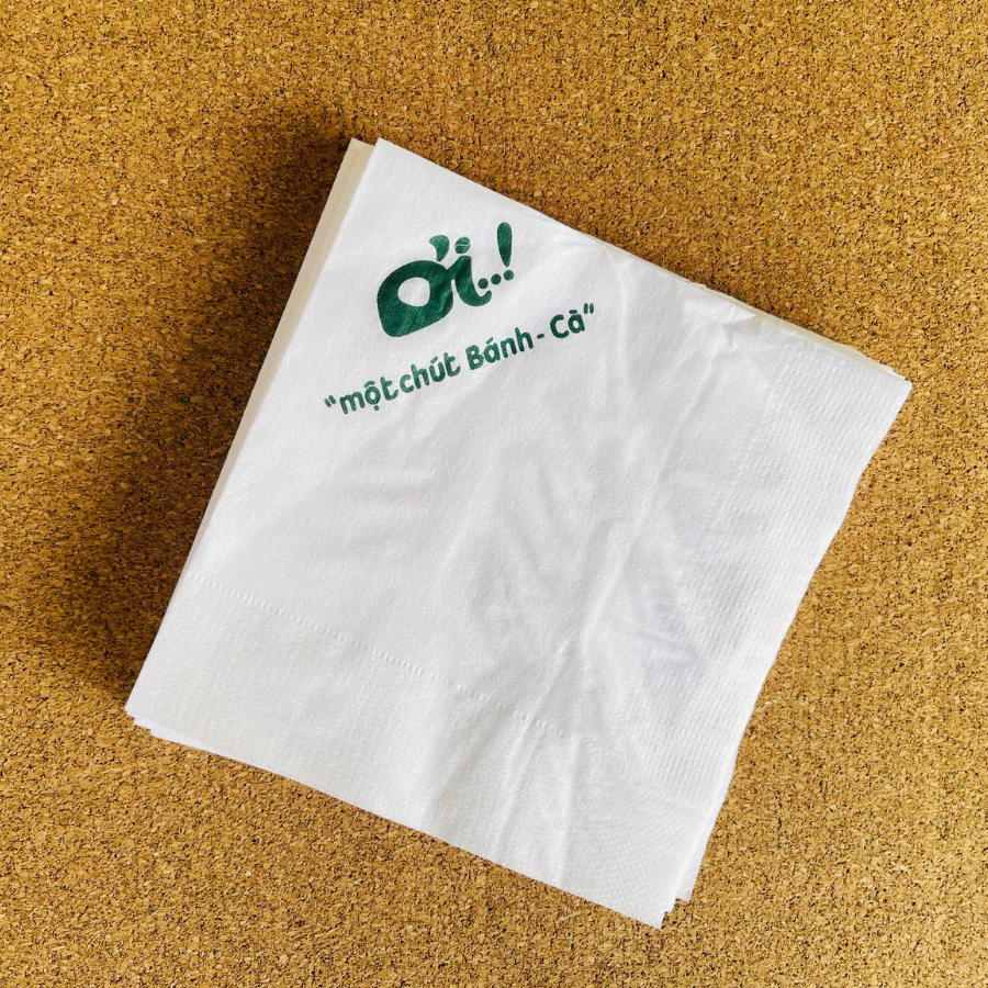 Khăn giấy ăn in logo Ơi - một cái bánh cà