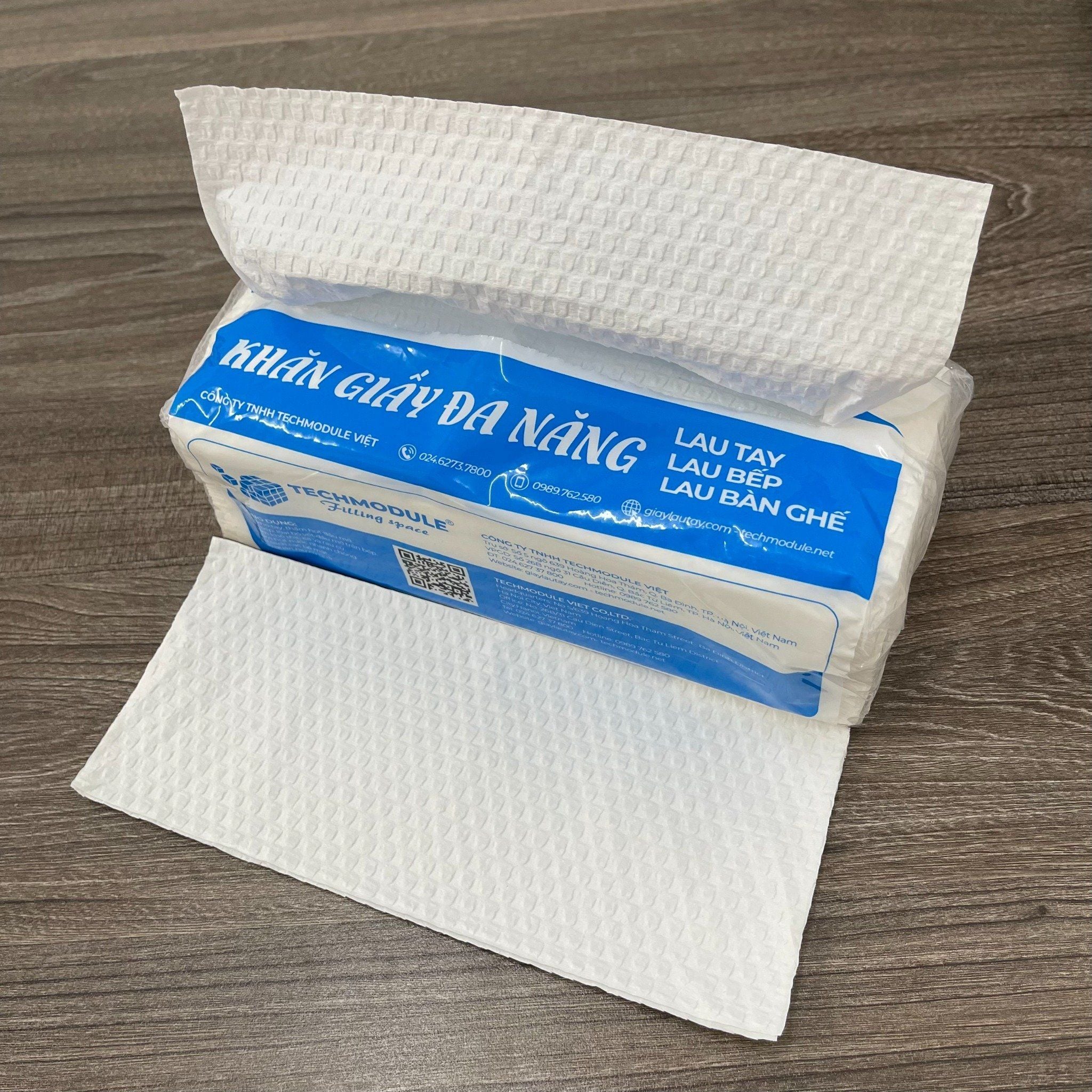 Khăn giấy lau tay đa năng TMCARE Premium Xanh, 100% bột giấy nguyên sinh - 100 tờ - vệ sinh sau và trong bữa ăn - 10 gói